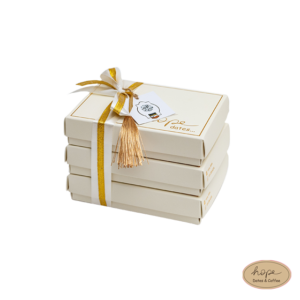 This luxurious gift set includes sugary Sukkary dates with biscuit and cardamom, Khalas dates with tahini and nuts, Arabic coffee, traditional coffee cups, a prayer bead, an incense burner, and Zamzam water. Perfect for gifting during Hajj and Umrah, it’s elegantly packaged to celebrate the spiritual journey.